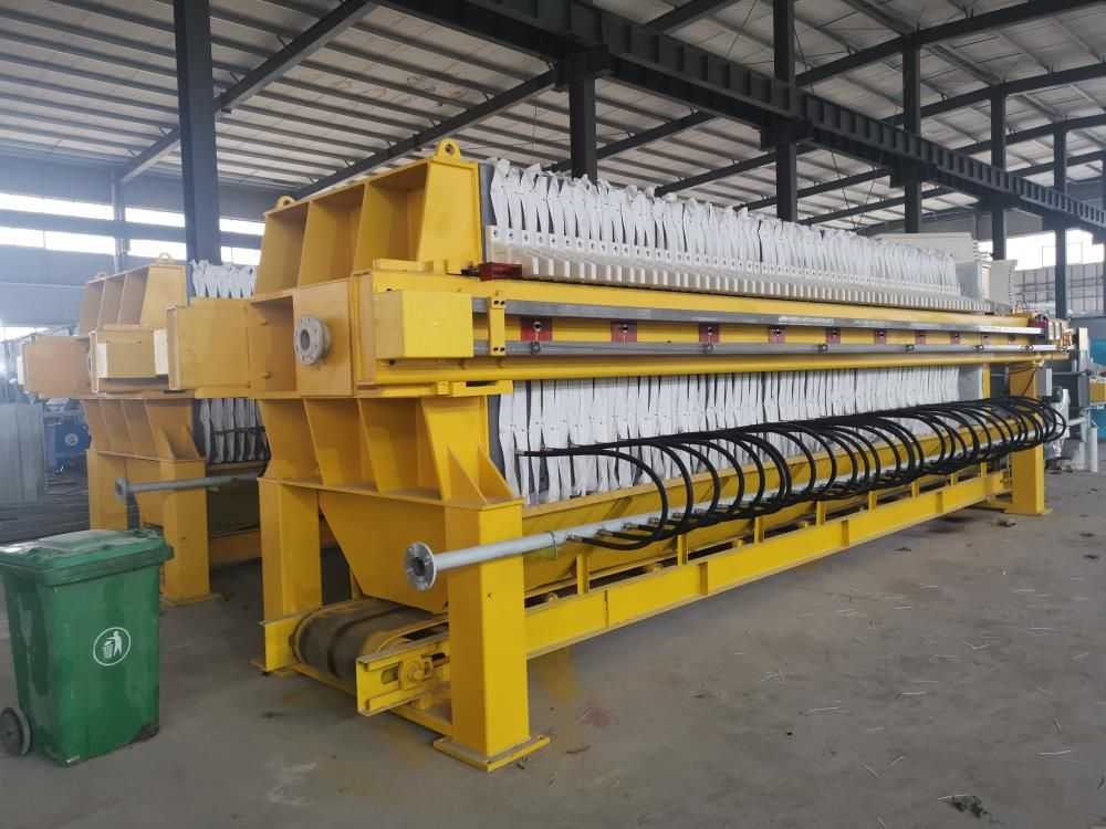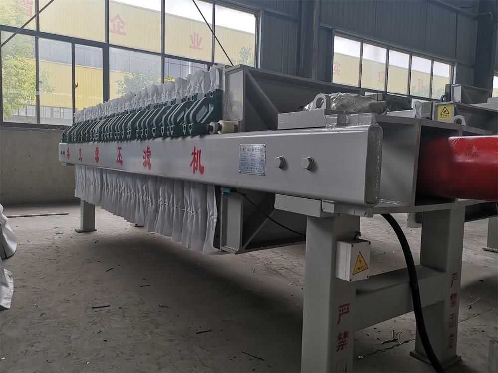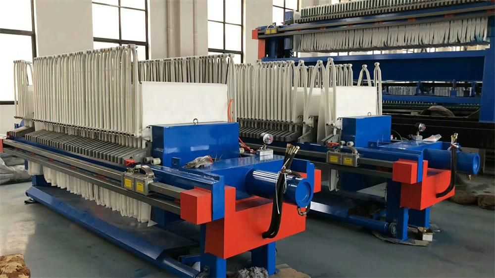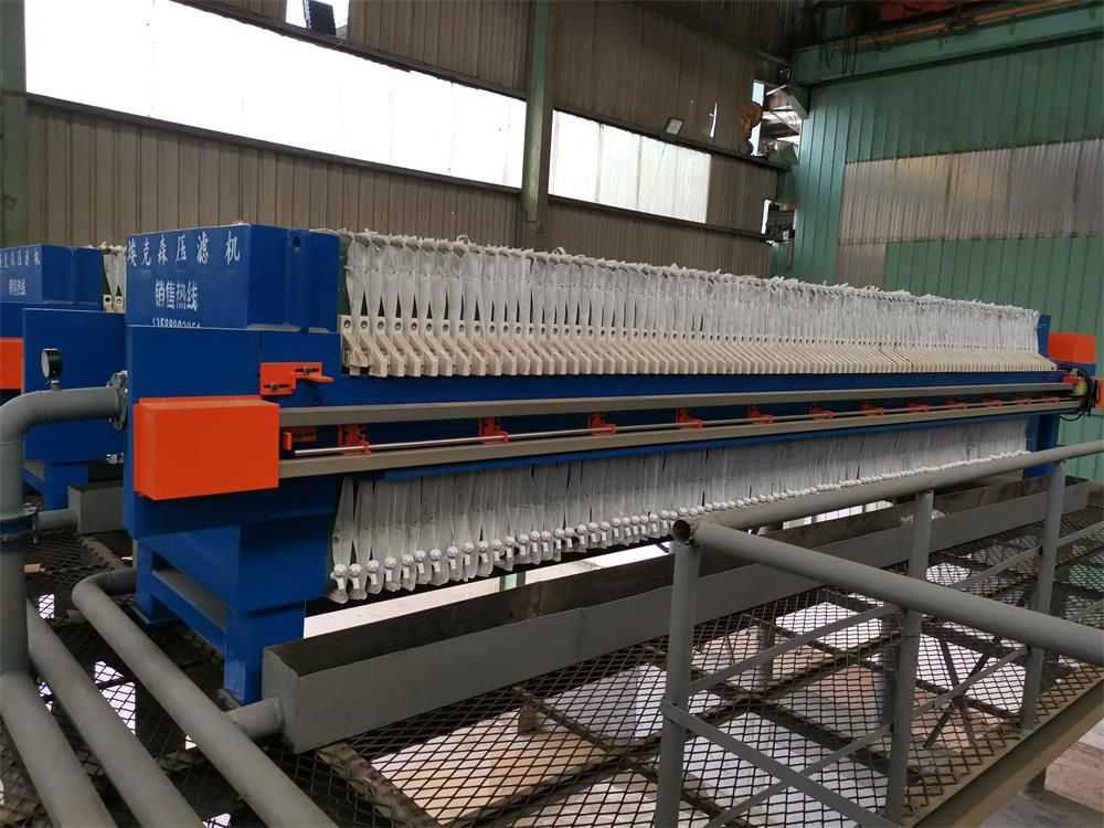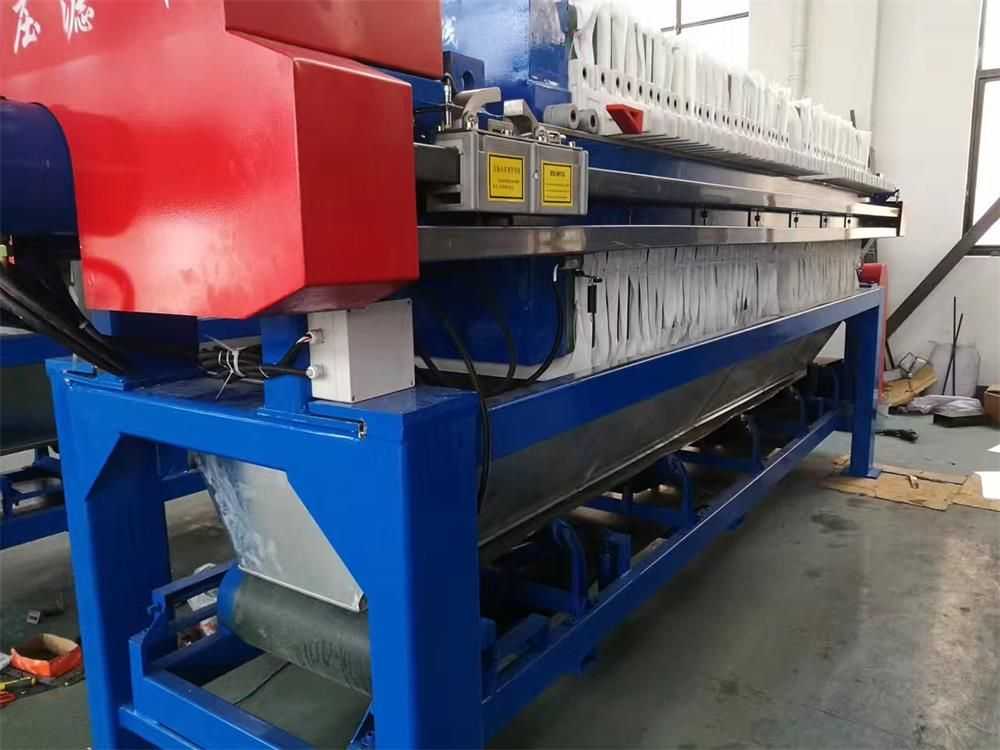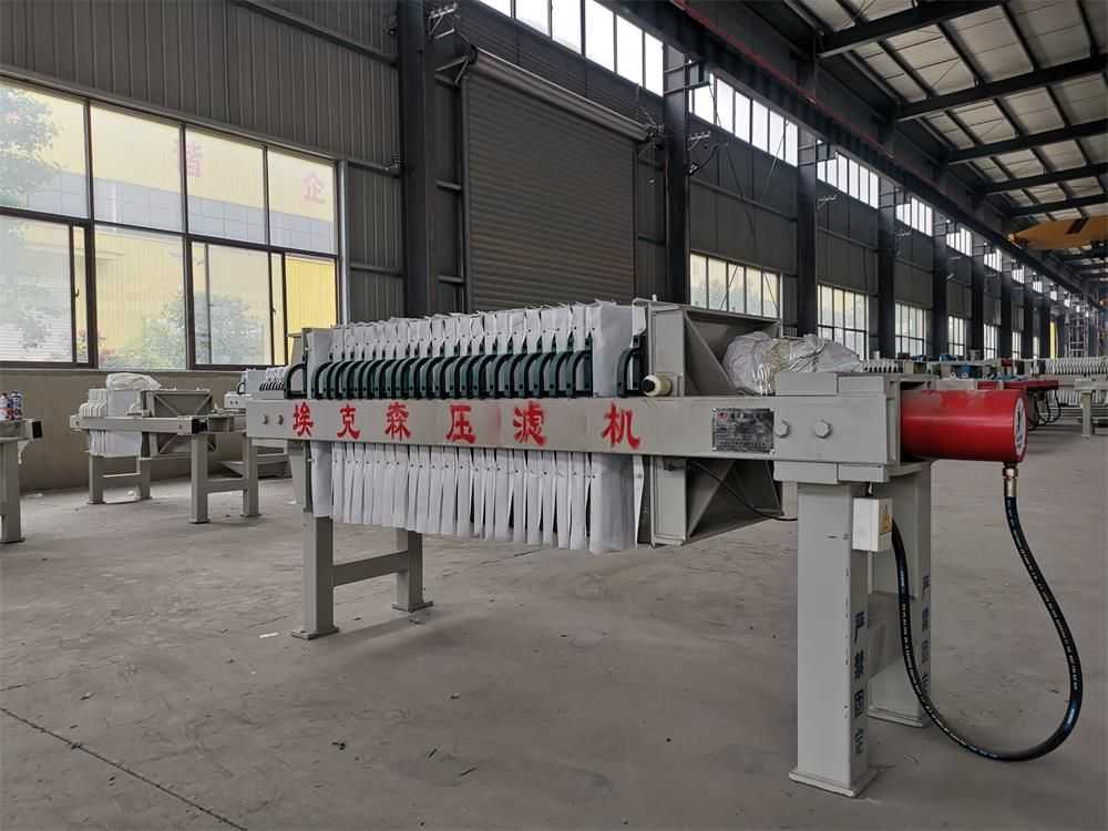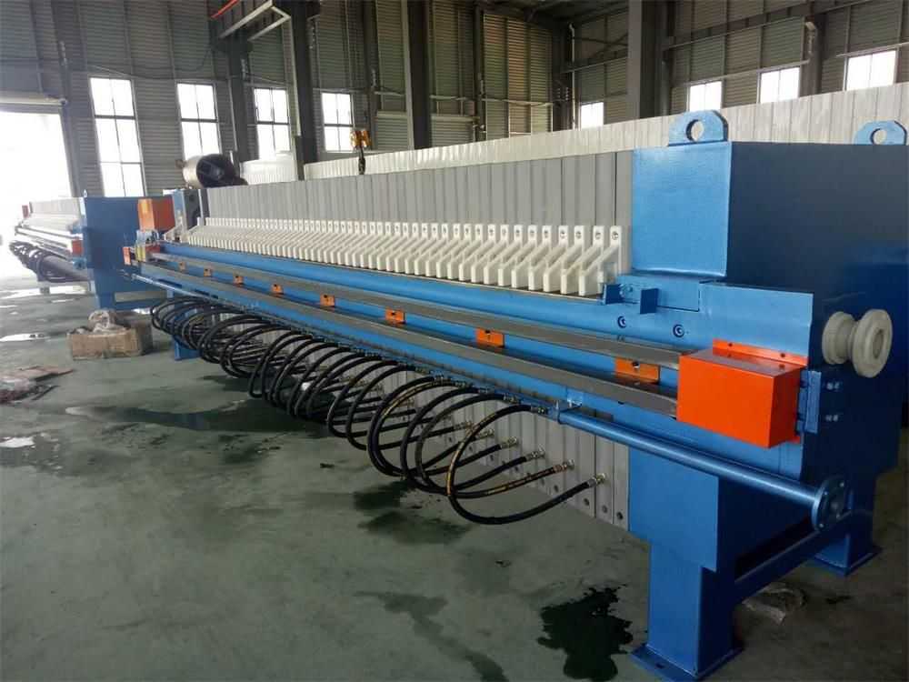 隔膜壓濾機和常規(guī)箱式壓濾機的主要區(qū)別在于,在濾板的兩側(cè)都增加了兩個彈性膜(復合橡膠膜是一個整體式膜。在操作期間,當進料完成時,將高壓流體介質(zhì)注入膜中,并使整個膜膨脹以過濾濾餅,以進一步使濾餅脫水,這是壓力過濾。在隔膜壓濾機運行期間,液壓系統(tǒng)使用液壓油作為壓力載體來傳遞內(nèi)部壓力。