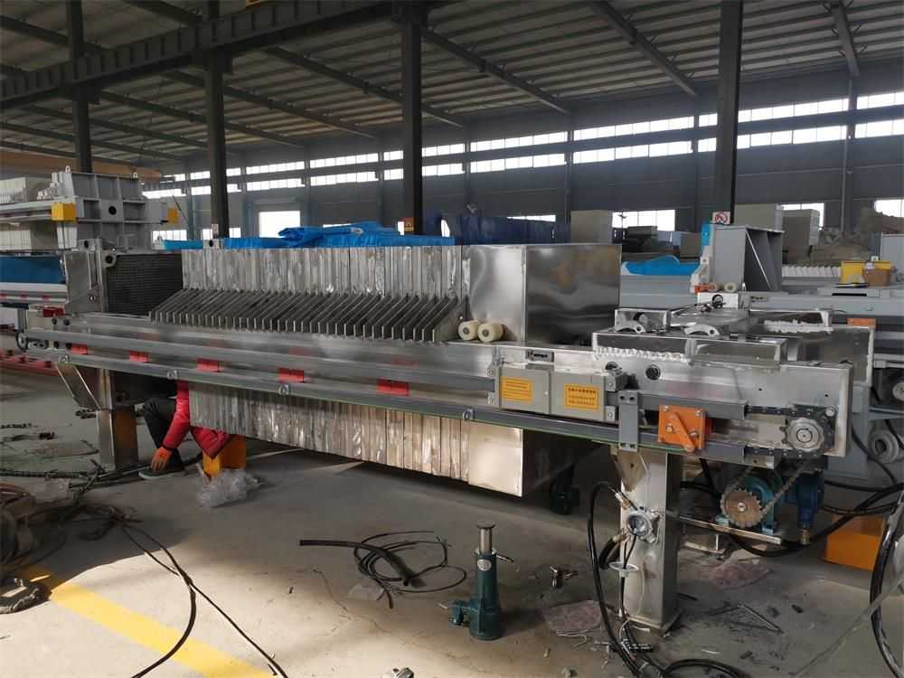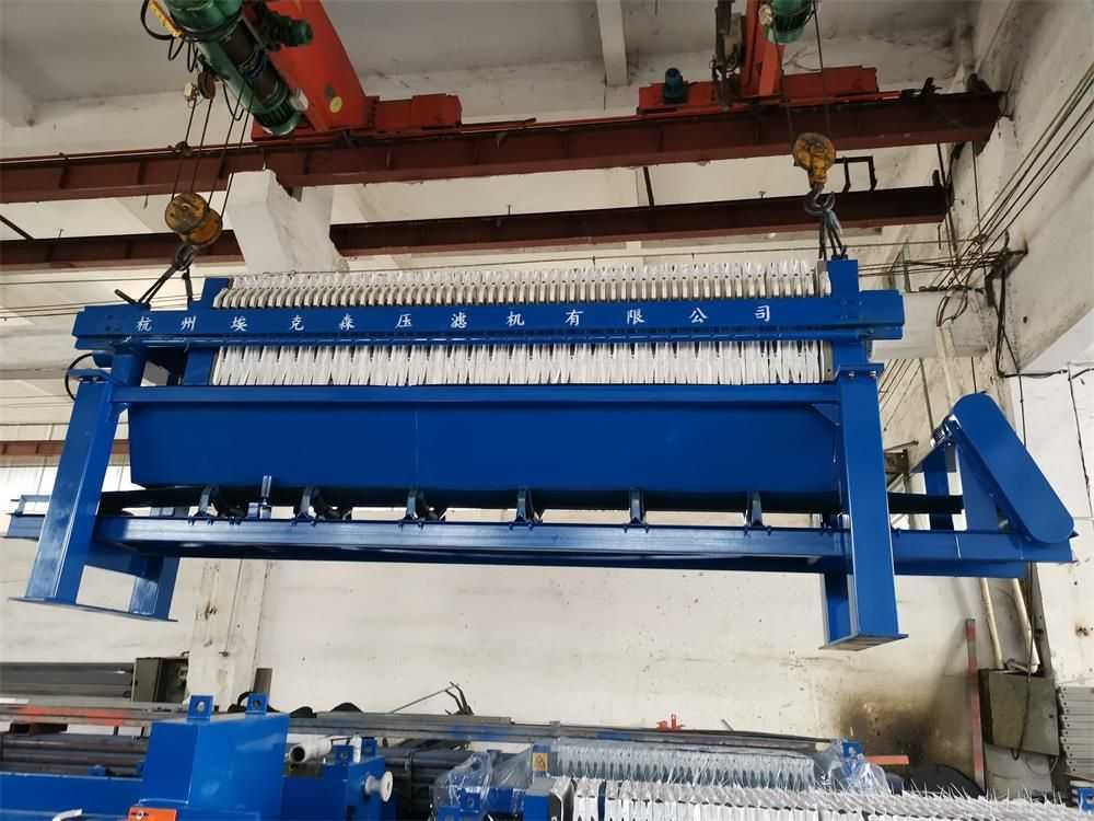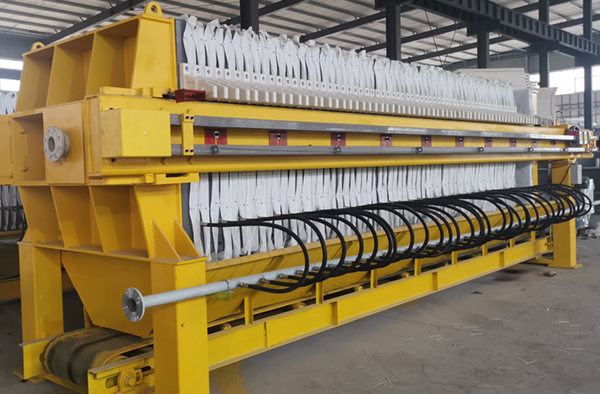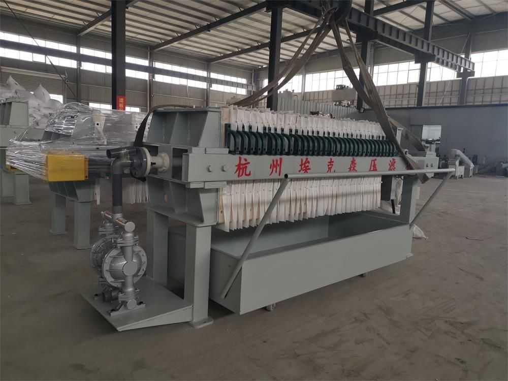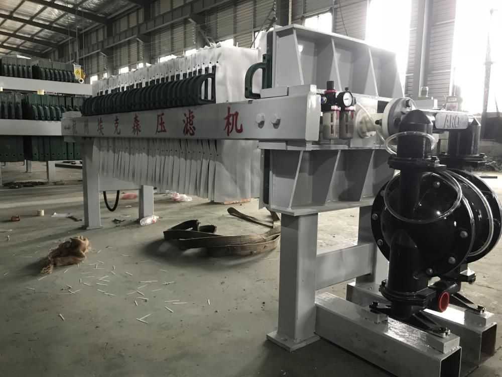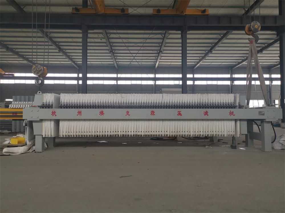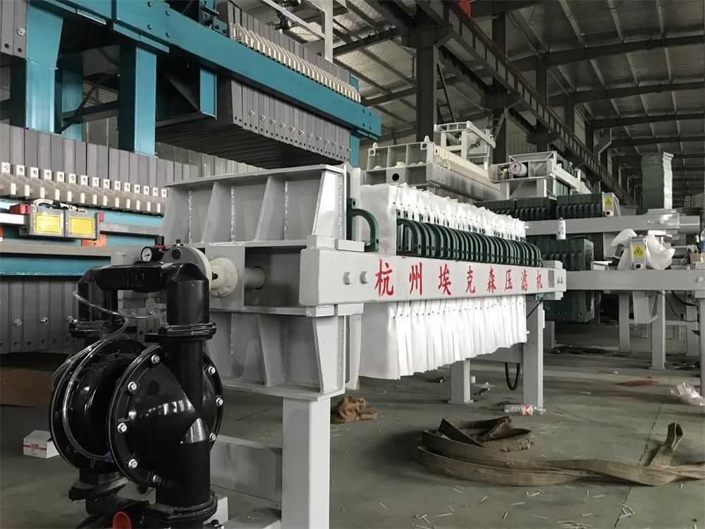 隔膜壓濾機和常規(guī)箱式壓濾機的主要區(qū)別在于,在濾板的兩側(cè)都增加了兩個彈性膜(復合橡膠膜是一個整體式膜。在操作期間,當進料完成時,將高壓流體介質(zhì)注入膜中,并使整個膜膨脹以過濾濾餅,以進一步使濾餅脫水,這是壓力過濾。在隔膜壓濾機運行期間,液壓系統(tǒng)使用液壓油作為壓力載體來傳遞內(nèi)部壓力。